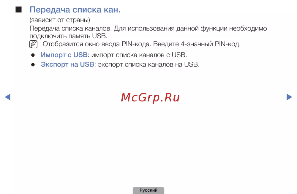 Экспорт❑на❑USB: экспорт списка каналов на USB.