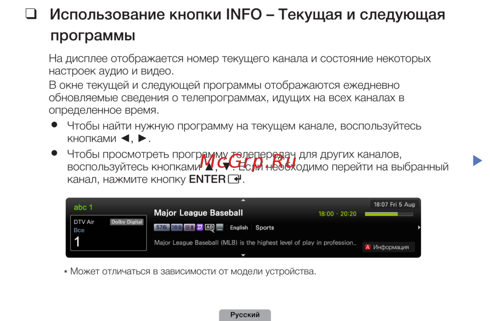 Использование❑кнопки❑INFO❑–❑Текущая❑и❑следующая❑