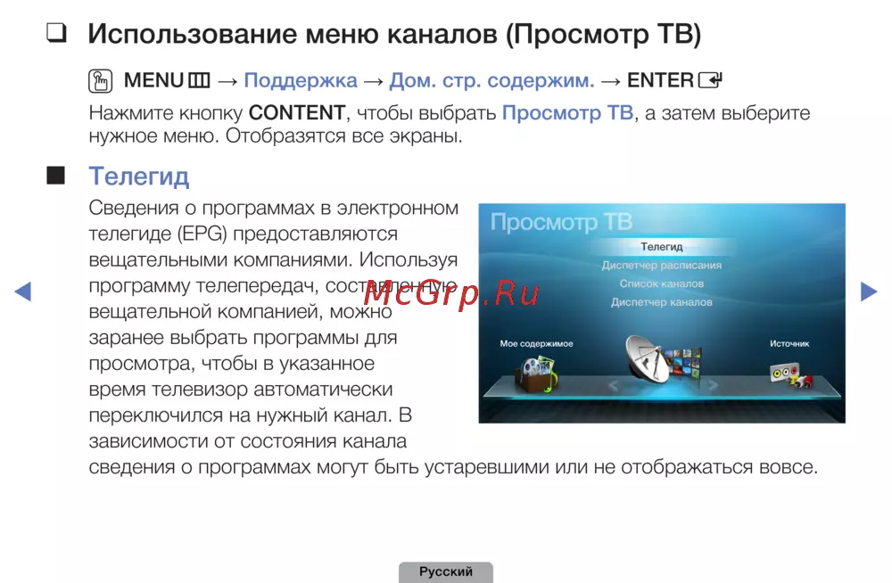 Использование❑меню❑каналов❑(Просмотр❑ТВ)❑