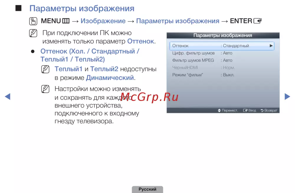 - Подсветка контраст яркость четкость цвет тон з к p.31