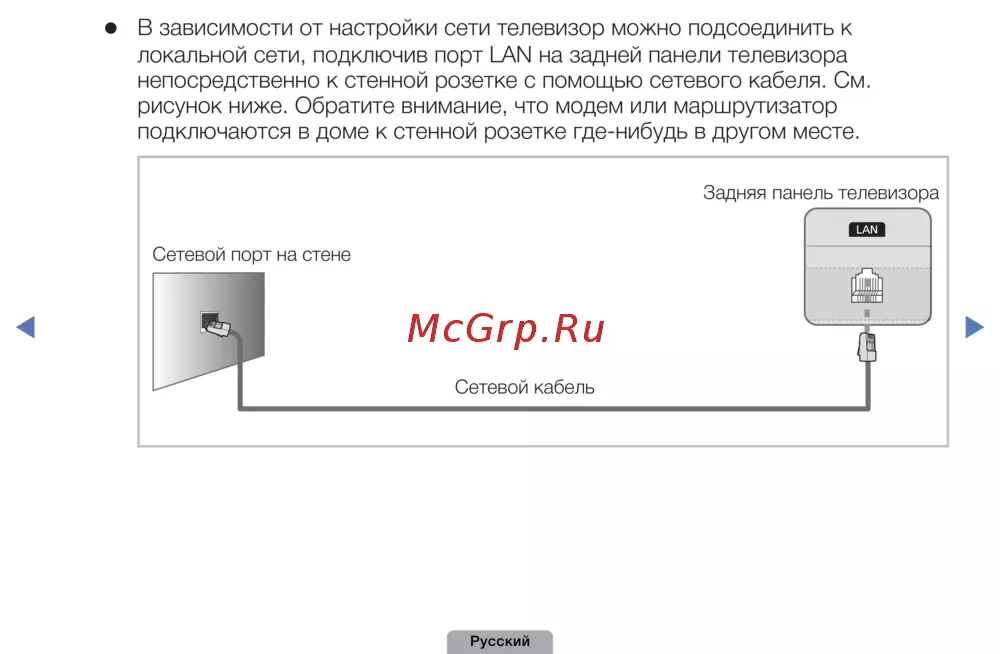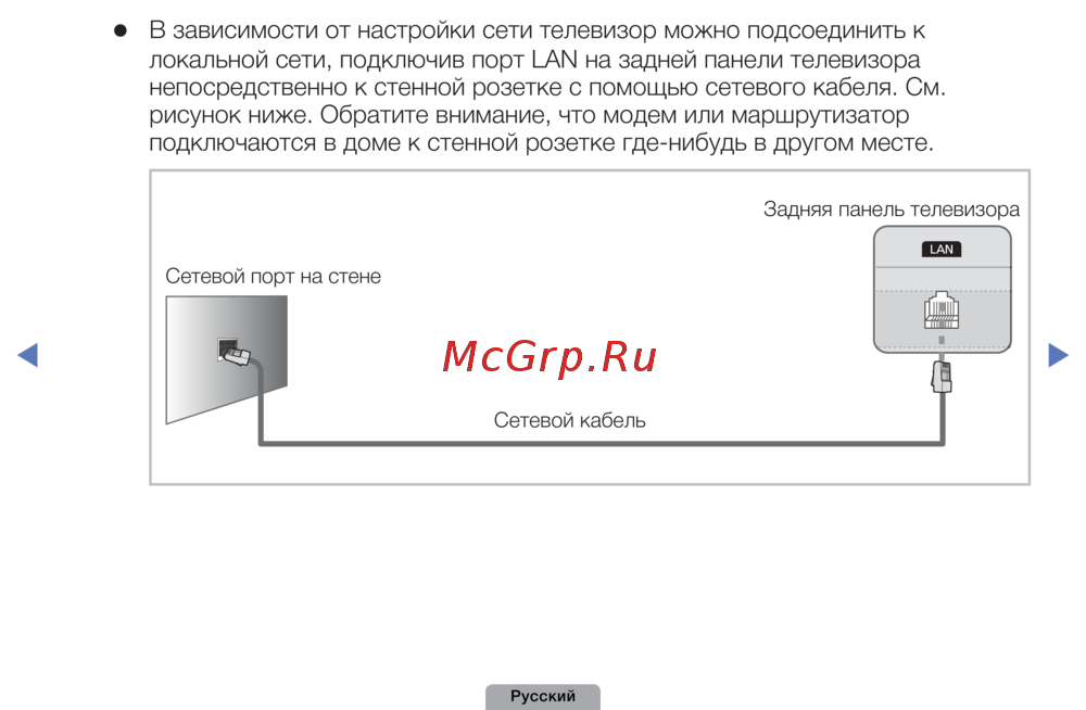 - Существует три способа подключения телевизора к локальной сети с помощью кабеля p.59