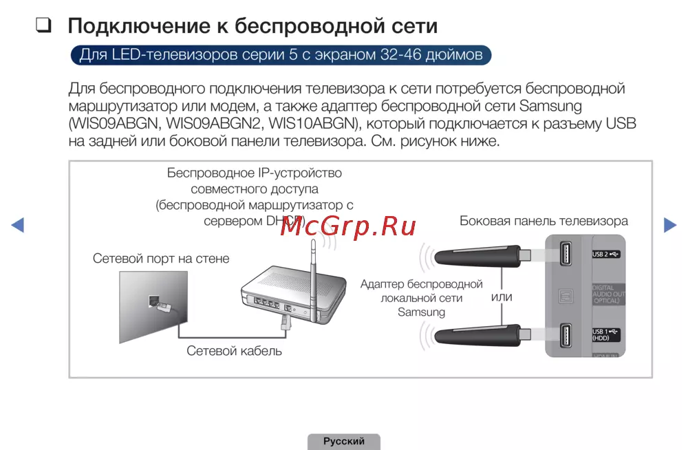 - Существует три способа подключения телевизора к локальной сети с помощью кабеля p.59