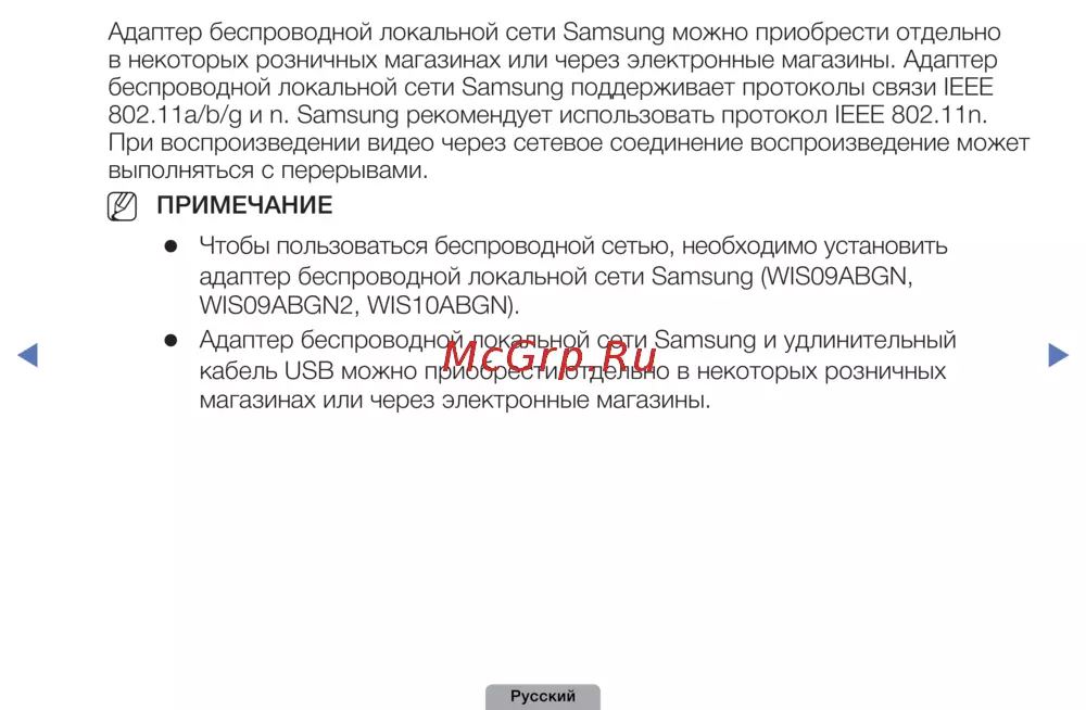 беспроводной локальной сети Samsung поддерживает протоколы связи IEEE