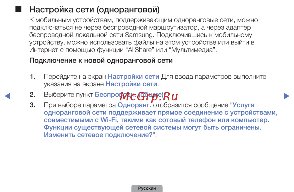 Samsung UE-40 D5000PW — настройка одноранговой сети для мобильных устройств [83/191]