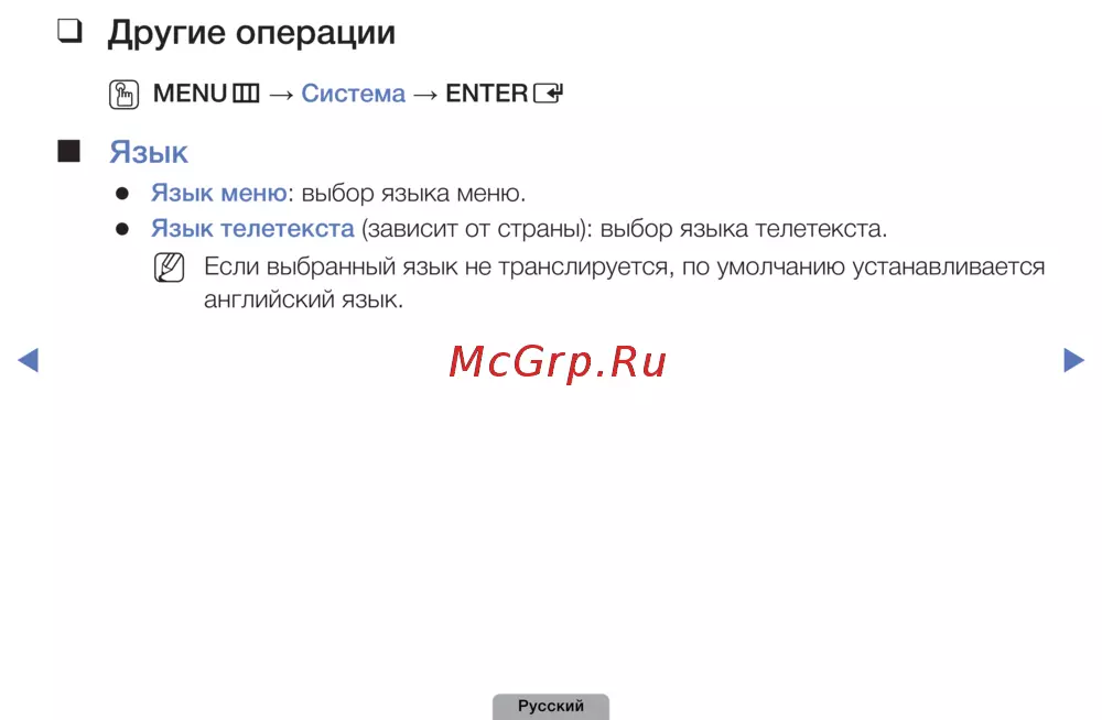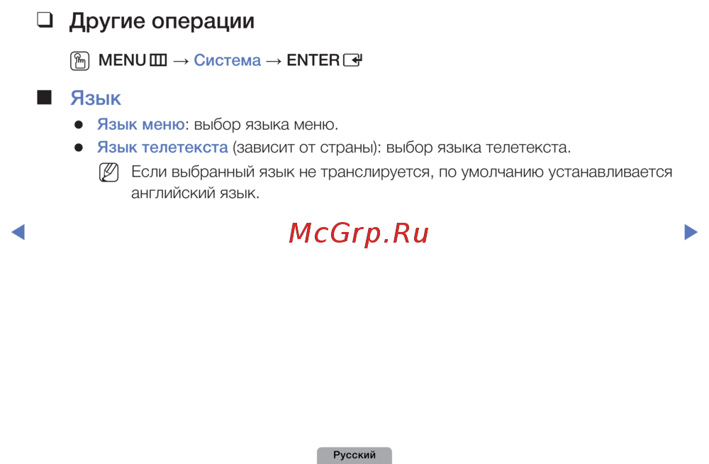 Язык❑телетекста❑(зависит от страны): выбор языка телетекста.