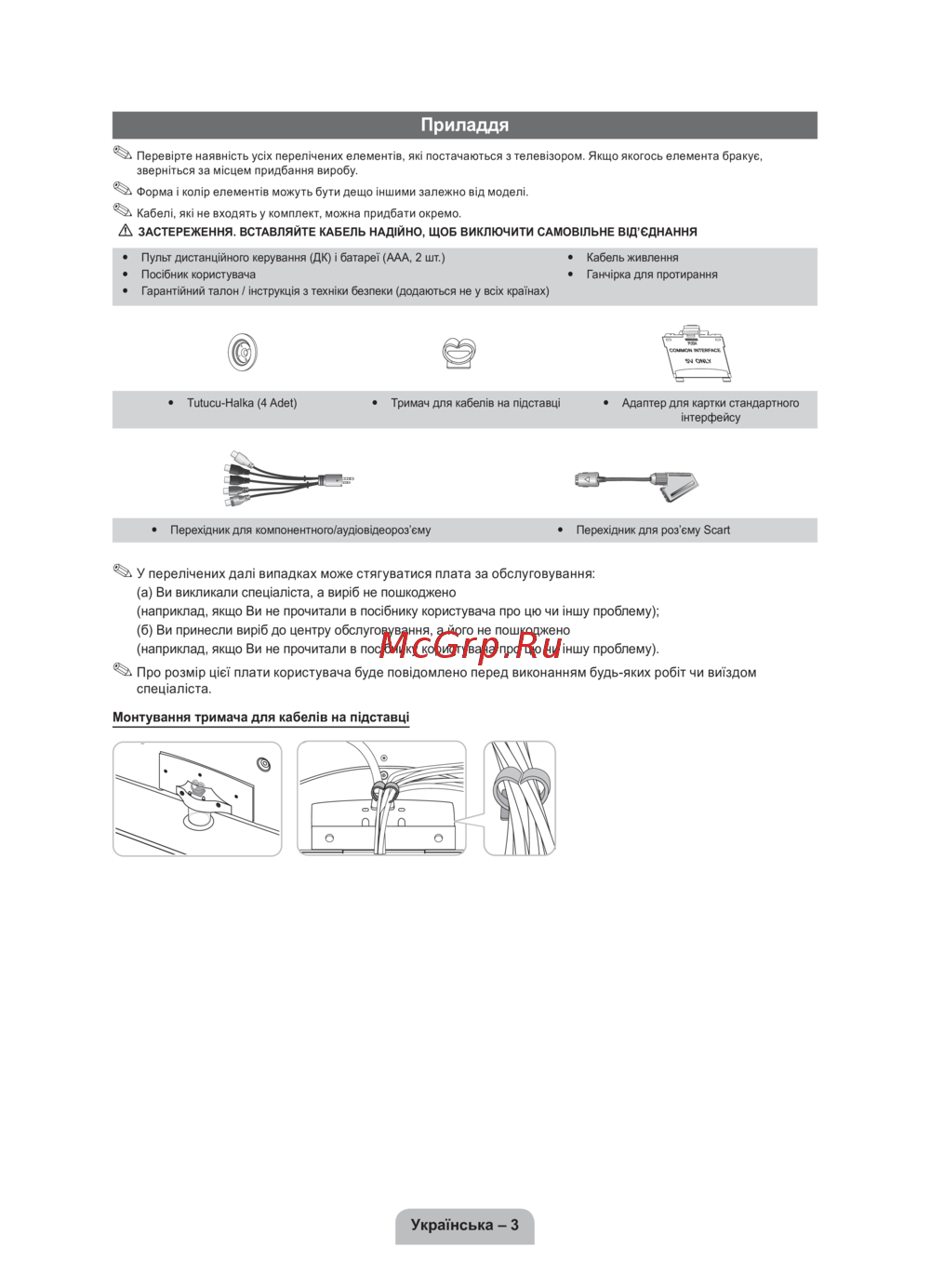 ![Samsung UE-40 D5000PW [39/73] Монтування тримача для кабелів на підставці](/views2/1126642/page39/bg27.png)