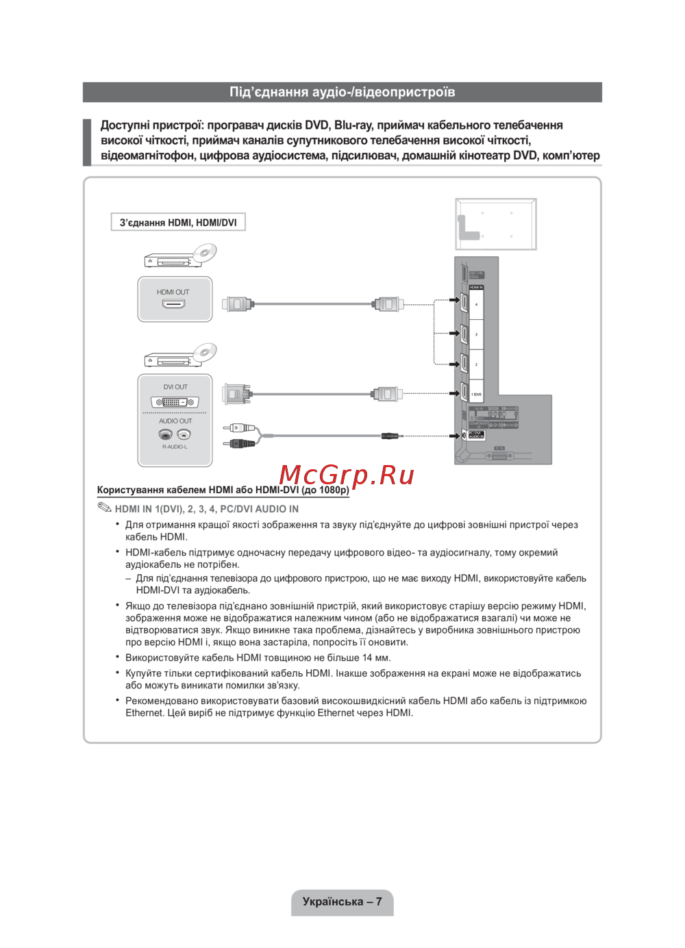 – Для під’єднання телевізора до цифрового пристрою, що не має виходу HDMI, використовуйте кабель