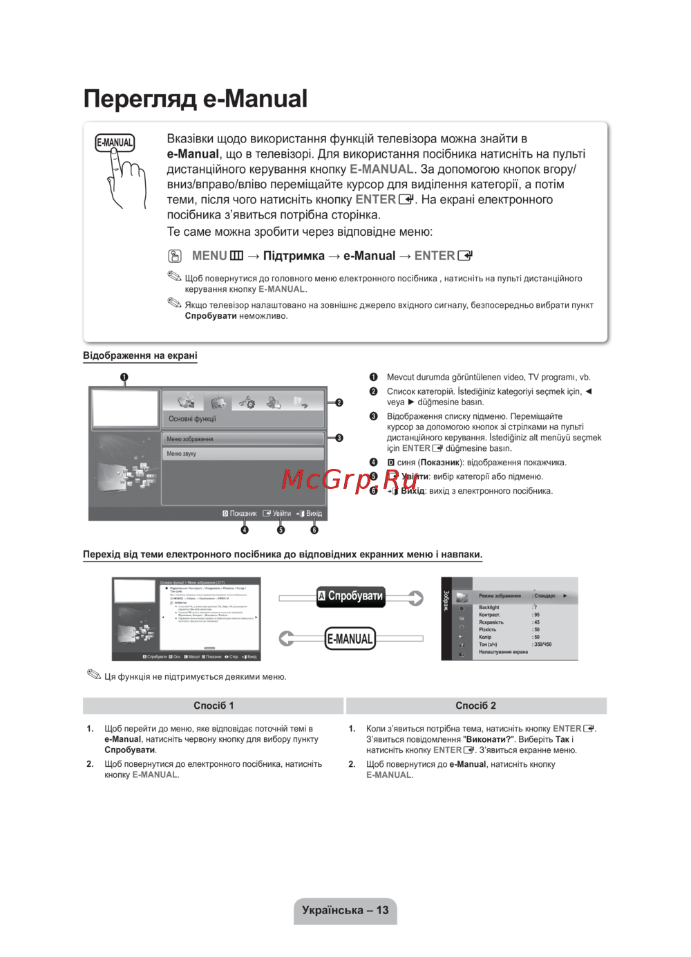 e-Manual, що в телевізорі. Для використання посібника натисніть на пульті