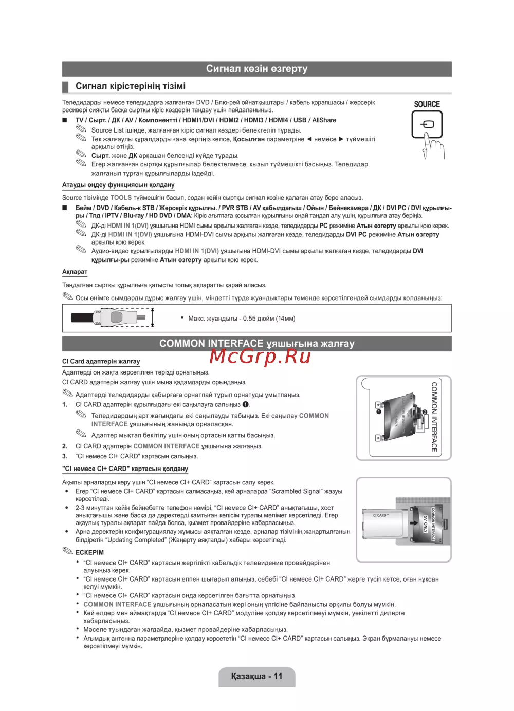 Кей елдер мен аймақтарда “CI немесе CI+ CARD” модуліне қолдау көрсетілмеуі мүмкін, уәкілетті дилерге