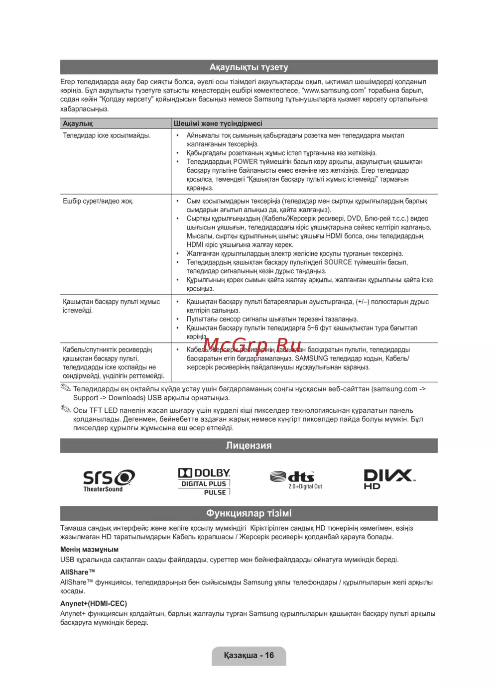 - Теледидар пішіміне қатысты кепілдік туралы маңызды ақпарат p.56
