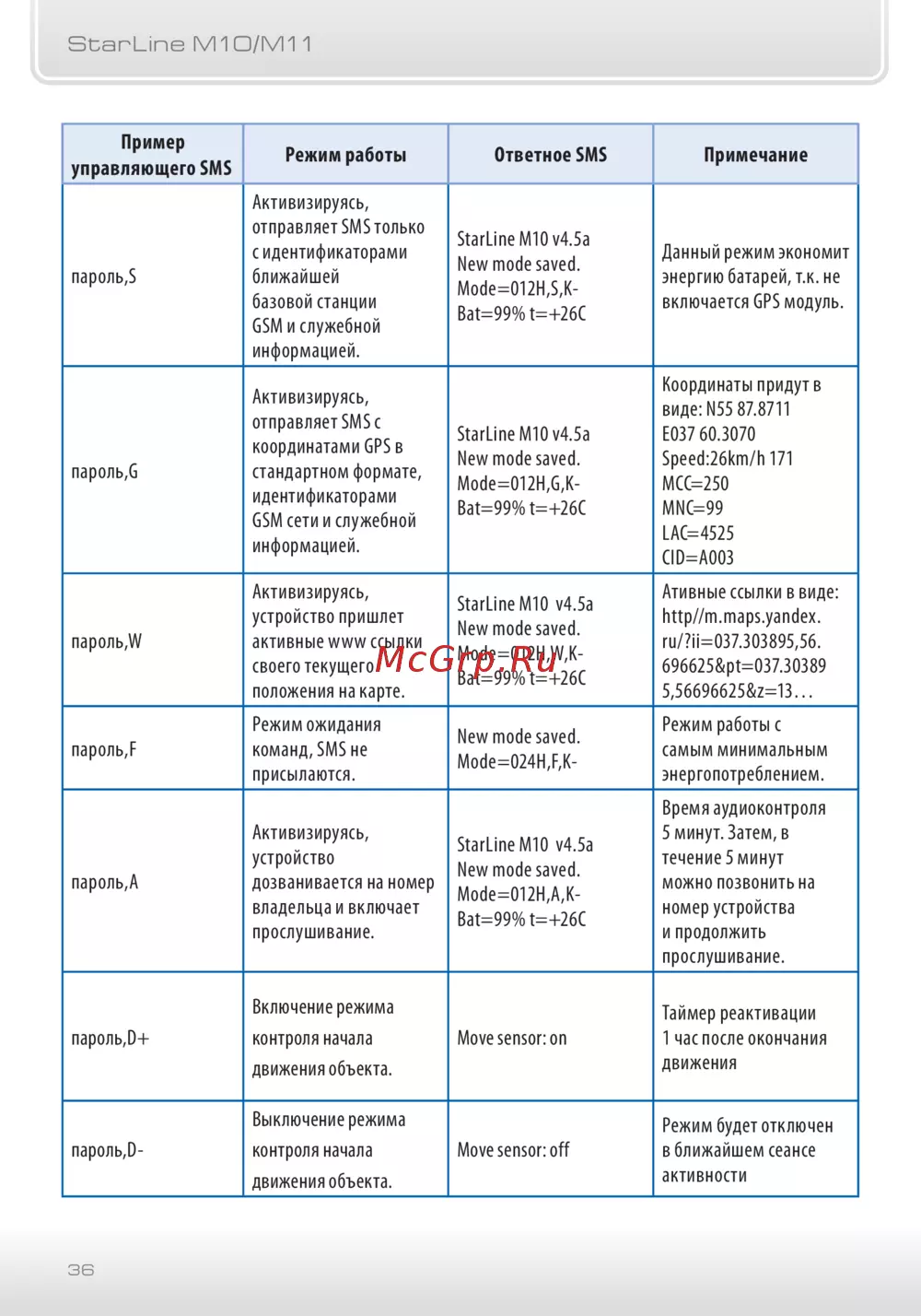 - Данный режим используется когда нет возможности определить gps координаты автомобиля также при использовании данной команды экономится энергия батарей т к не включается gps приемник пример p.16