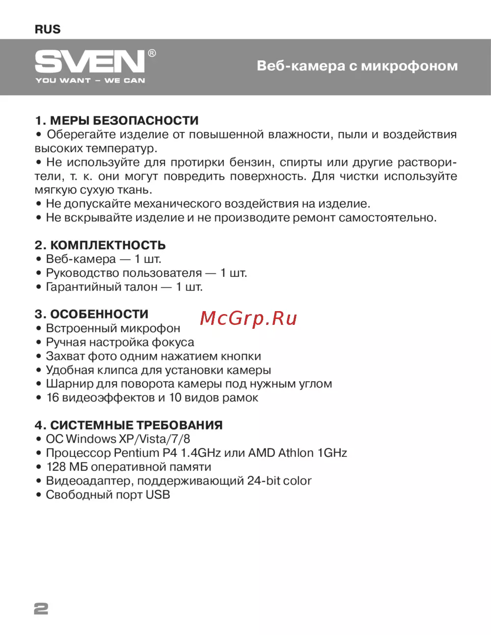 Sven IC-650 — веб-камера с микрофоном: особенности и меры безопасности [3/13]