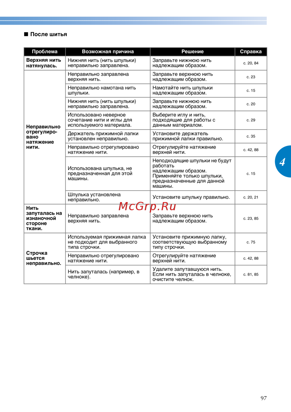 - Неверное натяжение нити p.90