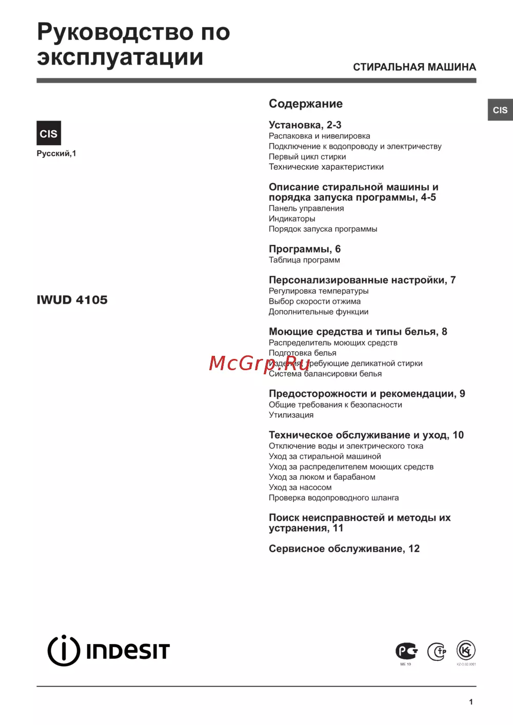 Indesit IWUD 4105 — полное руководство по эксплуатации стиральной машины [1/12]