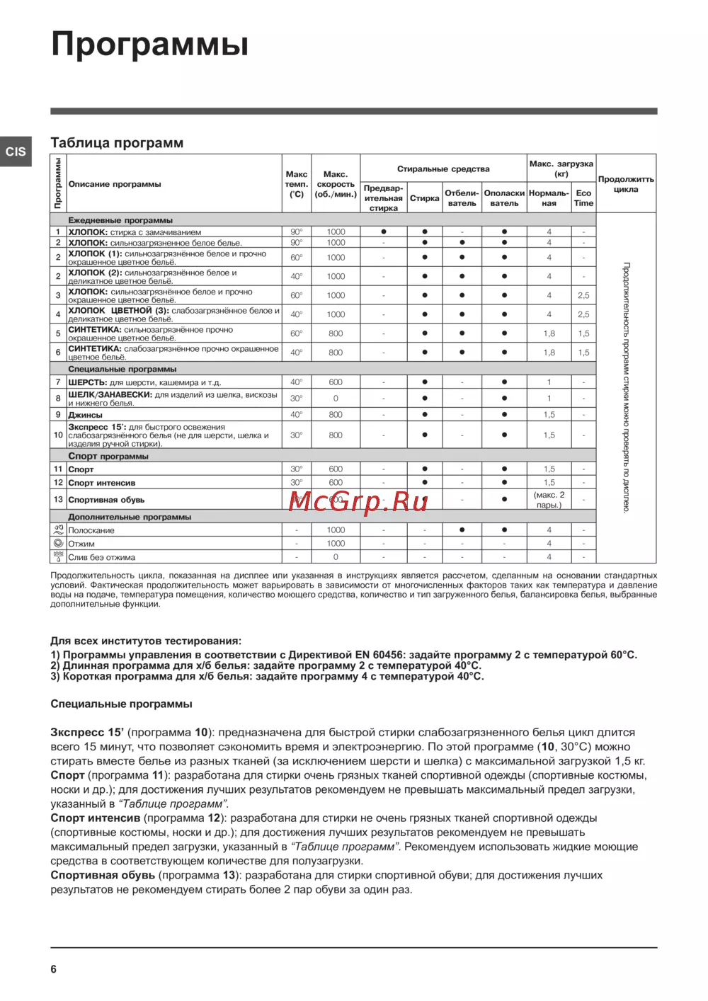 - Для всех институтов тестирования 1 программы управления в соответствии с директивой ем 60456 задайте программу 2 с температурой 60 с 2 длинная программа для х б белья задайте программу 2 с температурой 40 с 3 короткая программа для х б белья задайте программу 4 с температурой 40 с p.6