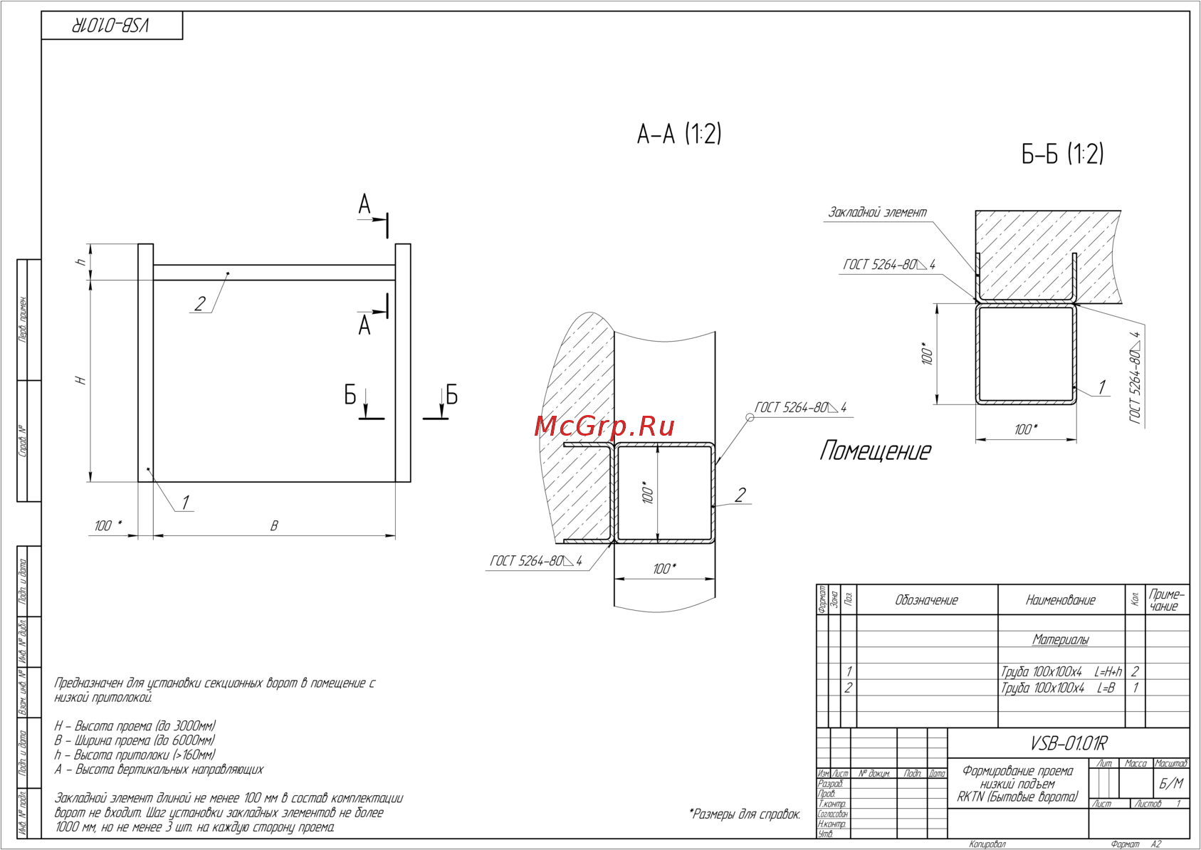 DoorHan RSD02Чертеж - RSD02, вертикальный подъем, формирование проема -