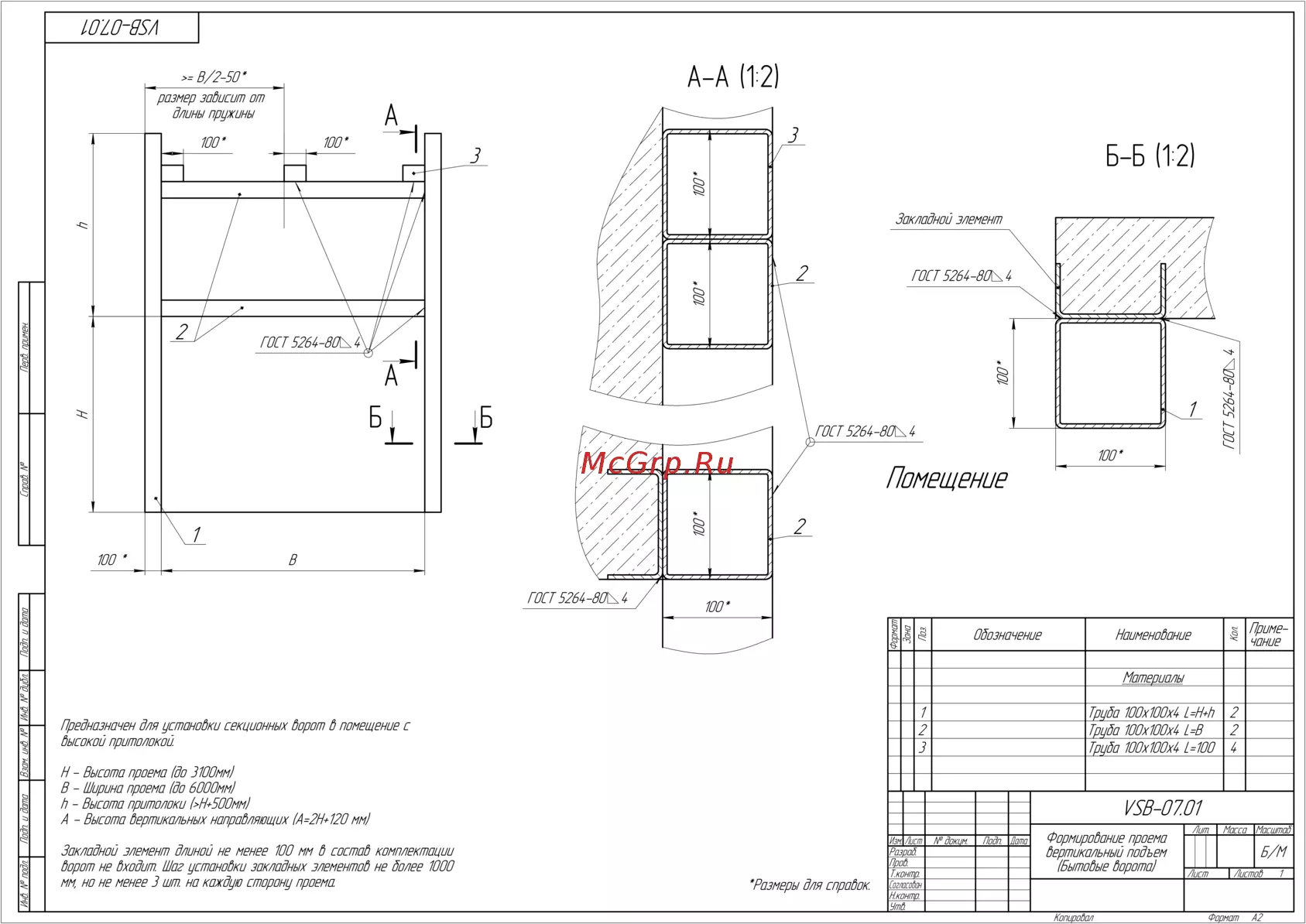 ворот не входит. Шаг установки закладных элементов не более 1000