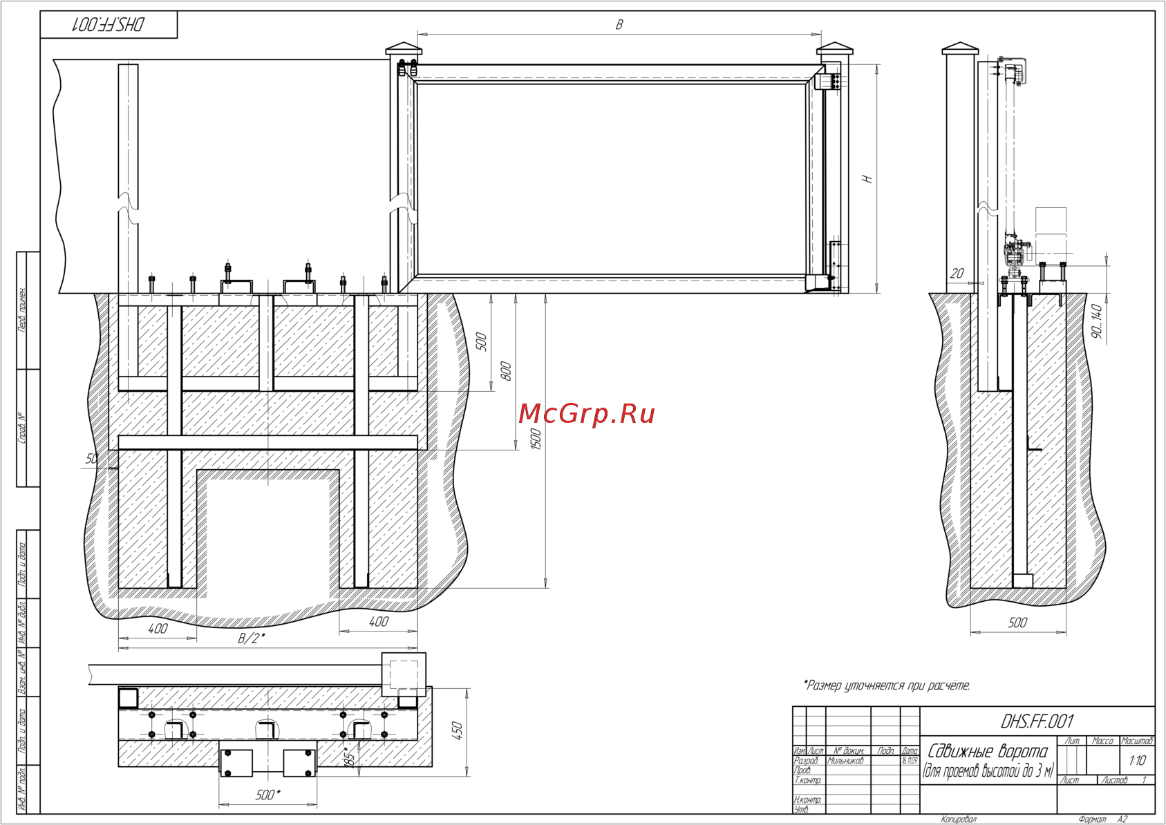 DoorHan Раздвижные уличные ворота из сэндвич-панелейЧертеж - Ворота сдвижные для проемов высотой более 3 м