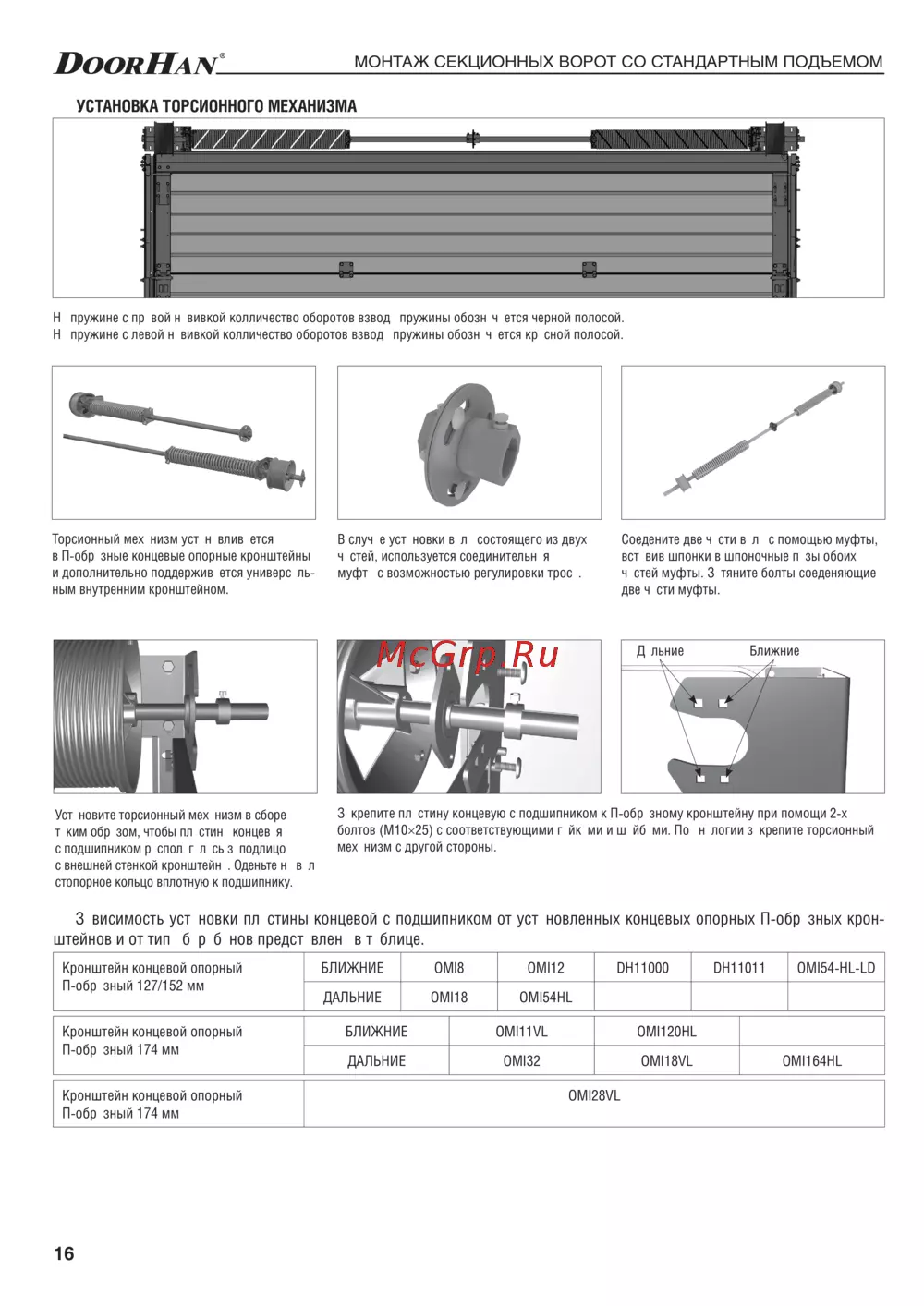 - Установка торсионного механизма с использованием концевых опорных кронштейнов p.22