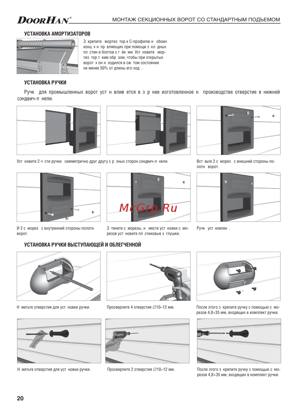 - Ручка для промышленных ворот устанавливается в заранее изготовленное на производстве отверстие в нижней сэндвич панели p.20