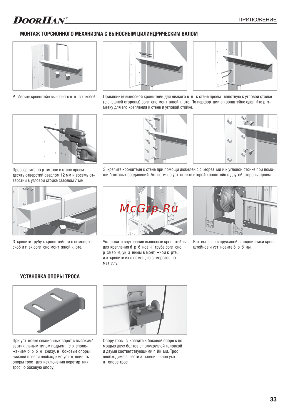 - Установка торсионного механизма с использованием концевых опорных кронштейнов p.22