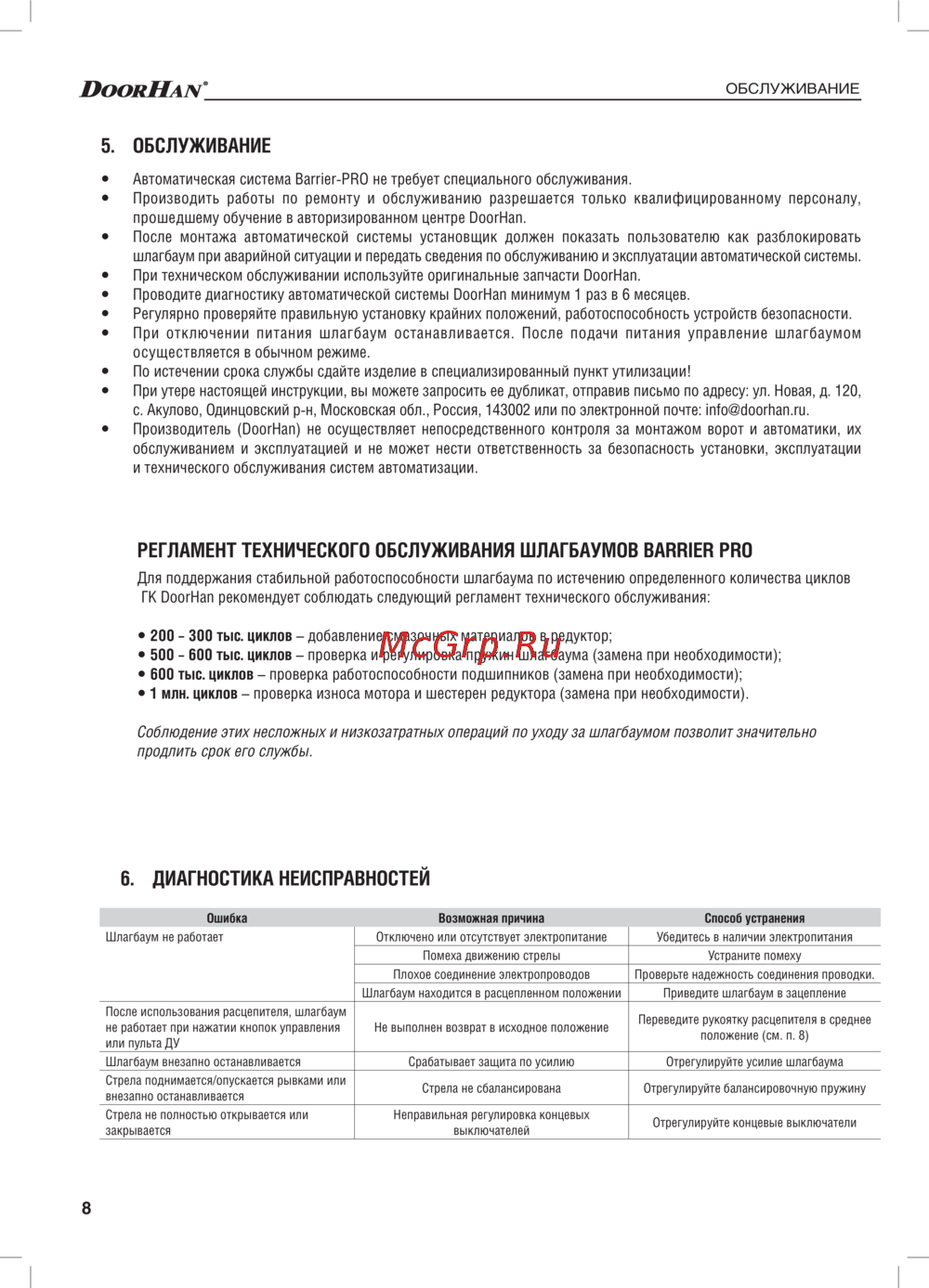 ![DoorHan Barrier PRO [8/12] Диагностика неисправностей](/views2/1269698/page8/bg8.png)