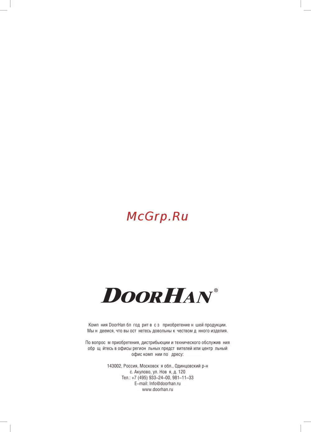 Компания DoorHan благодарит вас за приобретение нашей продукции.