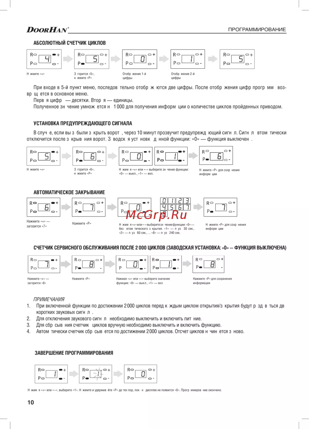 СчеТчик СервиСноГо обСлУживания поСле 2 000 циклов (заводСкая УСТановка: «0» — фУнкция выключена)