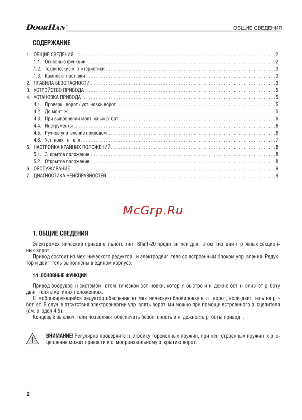 - Электромеханический привод вального типа shaft 20 предназначен для автоматизации гаражных секцион p.2