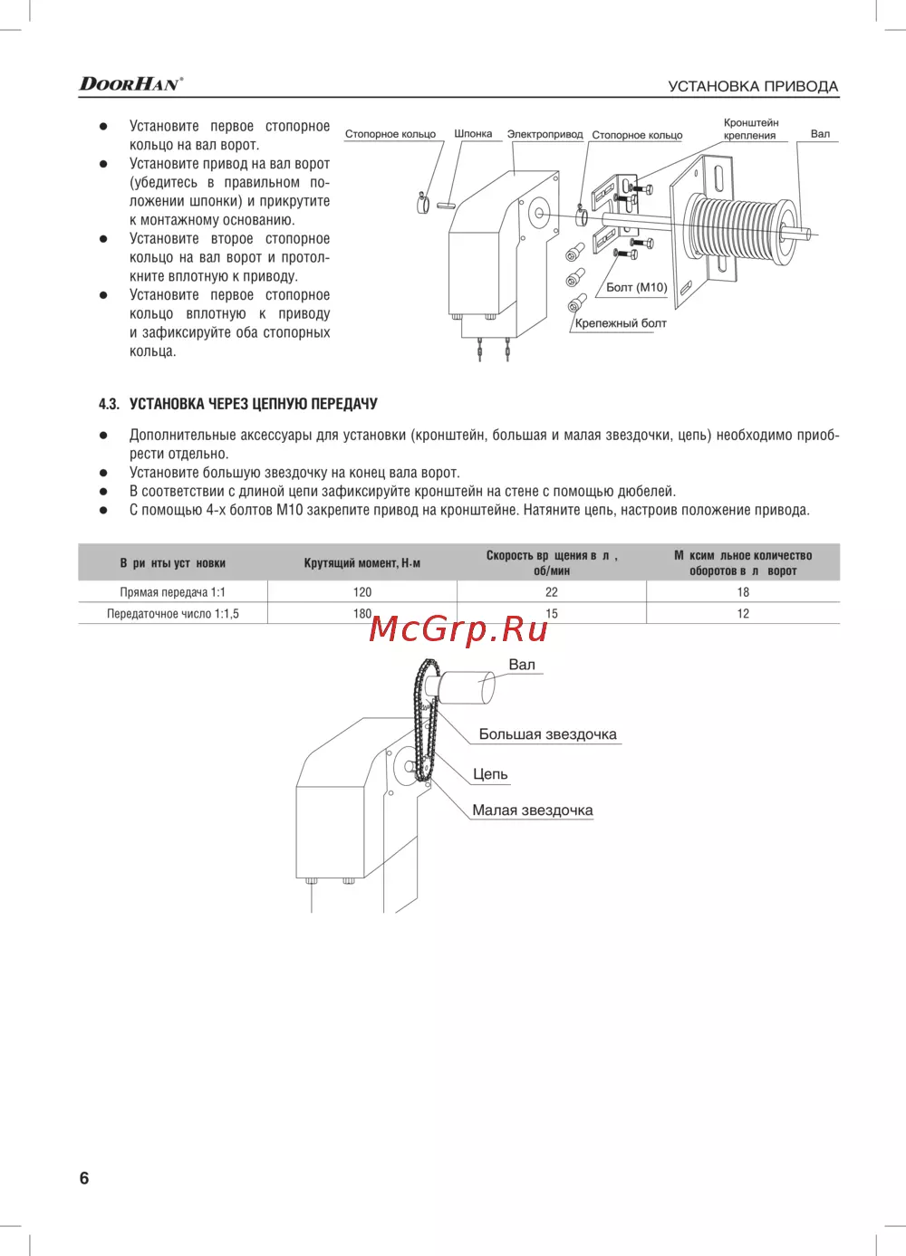 DoorHan Shaft-120 — установка привода через цепную передачу: пошаговая инструкция [6/12]