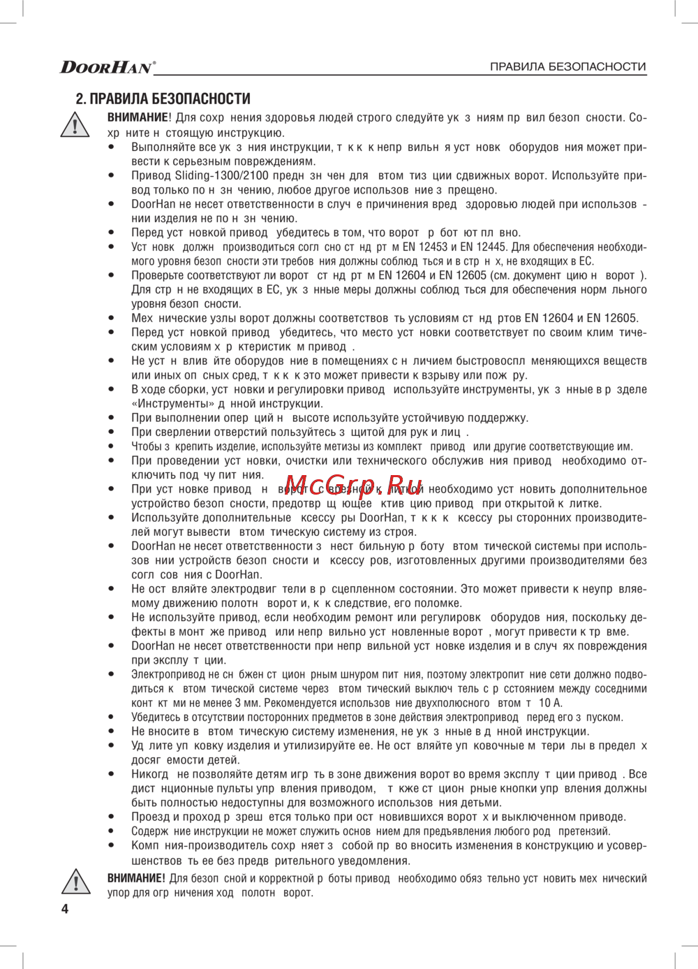 DoorHan SLIDING-2100 — правила безопасности при установке автоматических ворот [4/12]