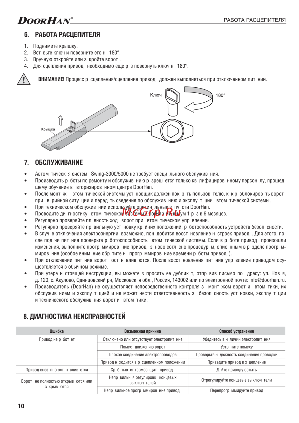 DoorHan SW-3000 — инструкция по работе и обслуживанию автоматических ворот [10/14]
