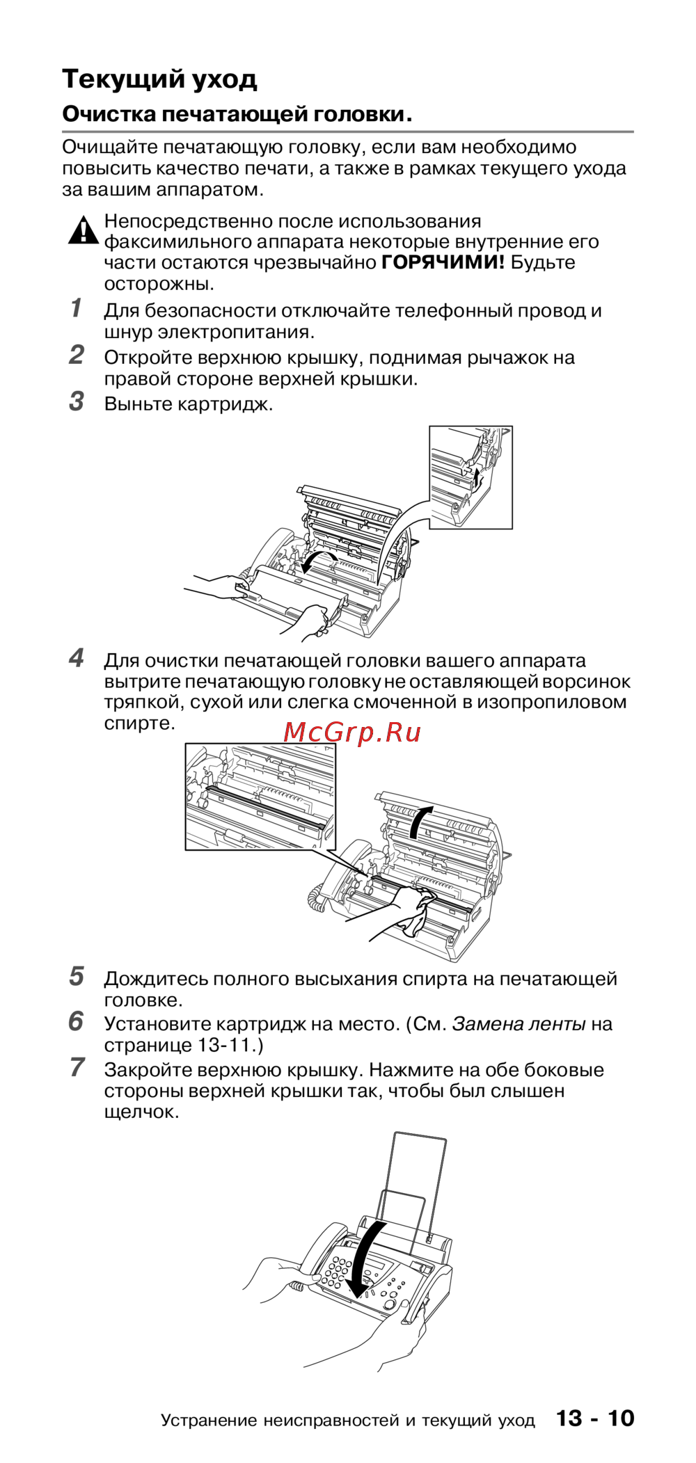 Brother FAX-T104 — устранение неисправностей и уход за печатающей головкой [101/118]