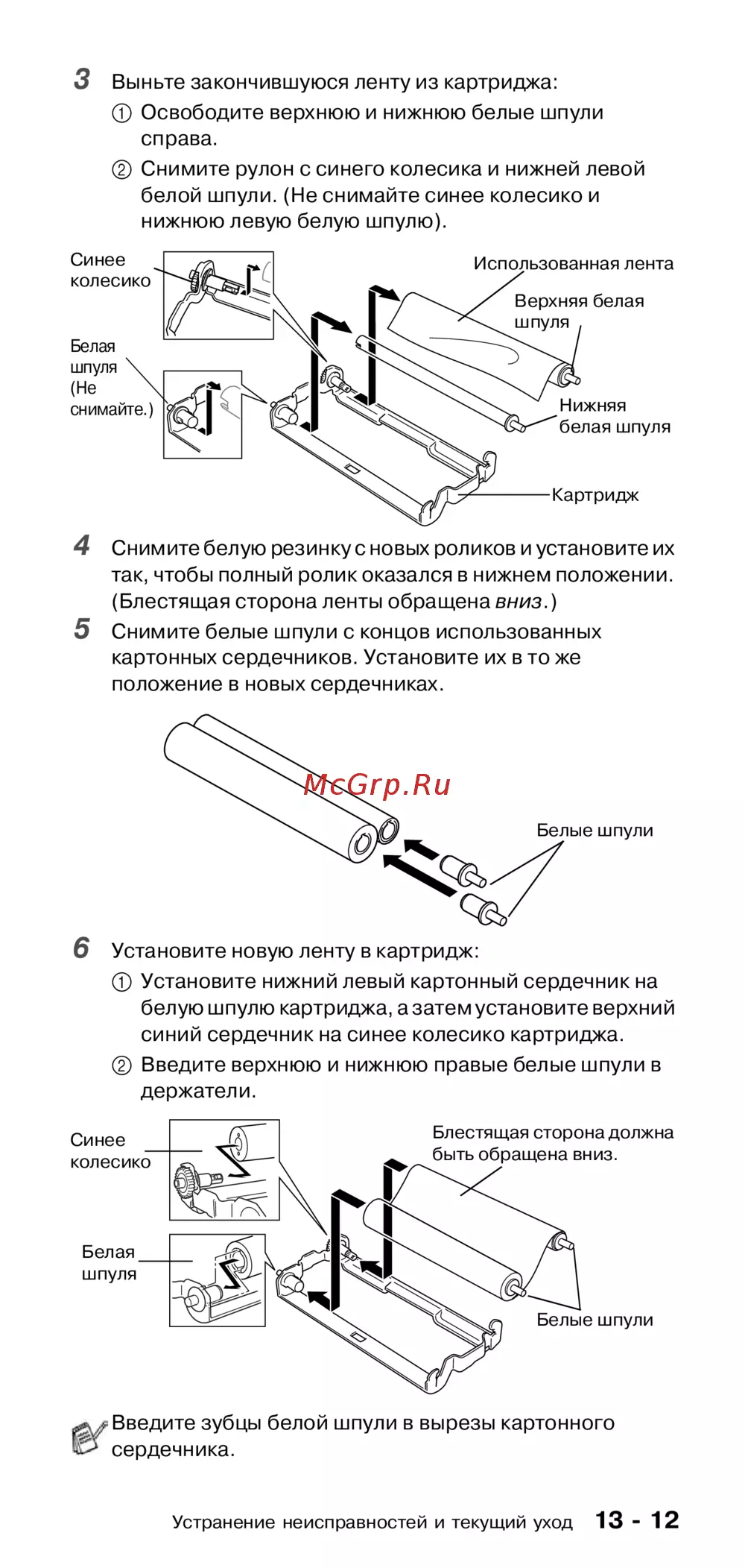 Подробная инструкция по устранению неисправностей и текущему уходу за устройством. Узнайте, как правильно заменить ленту и шпули для оптимальной работы.