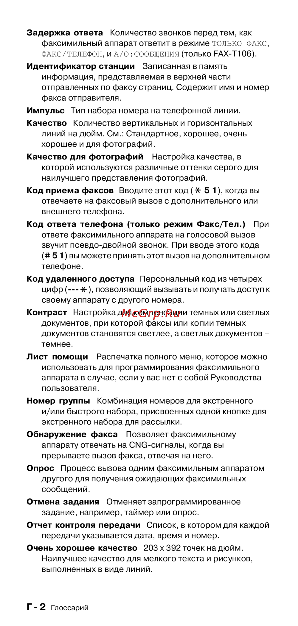 Brother FAX-T104 — глоссарий терминов факсимильной связи и настройки [106/118]