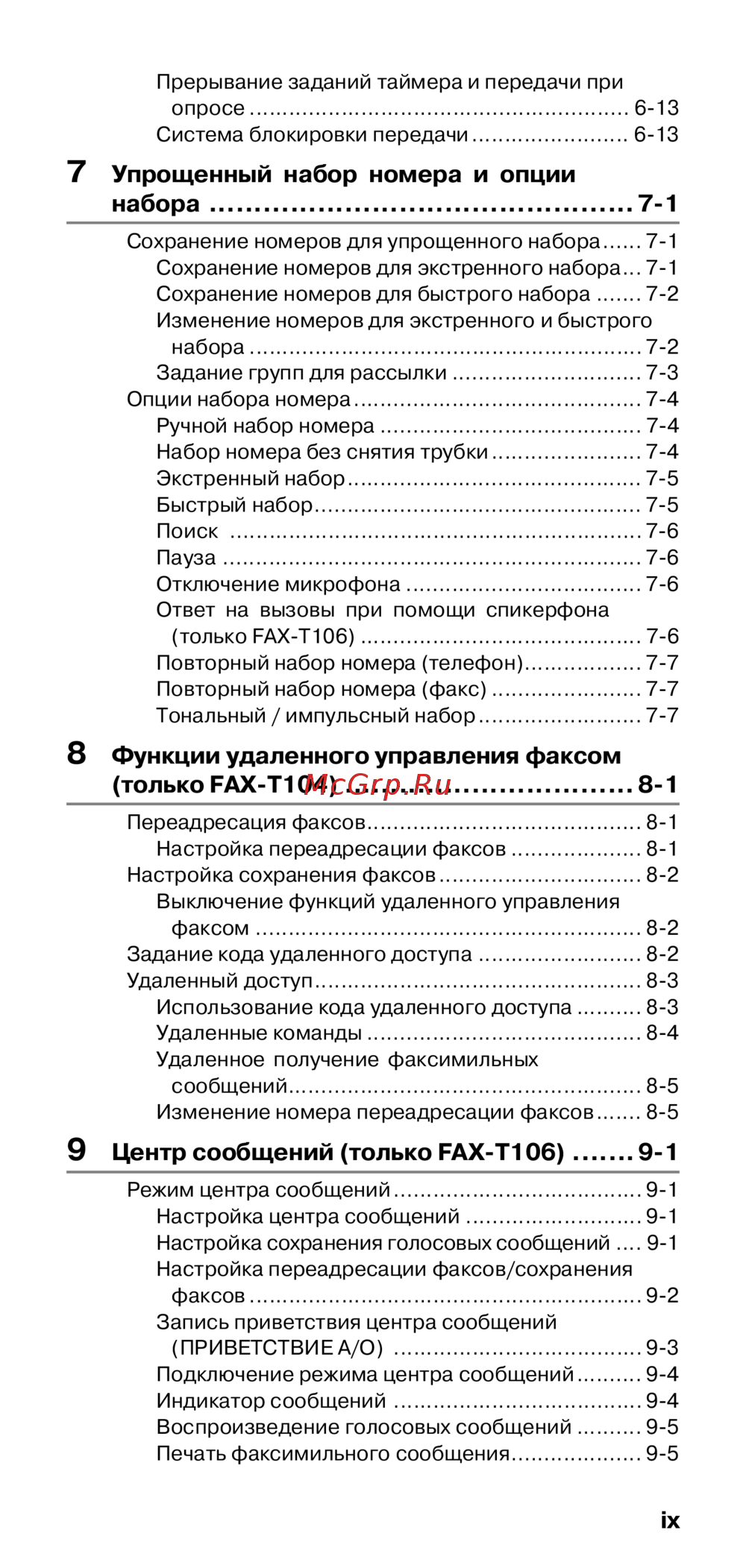 - Функции удаленного управления факсом только fax t104 1 p.11