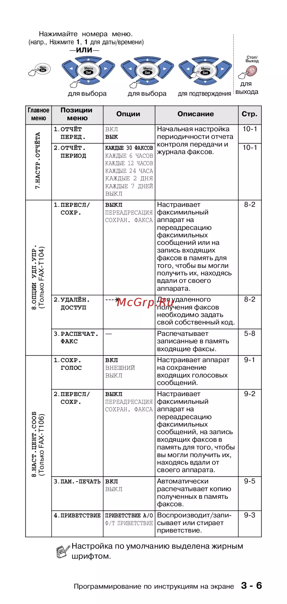 Brother FAX-T104 — настройка факсимильного аппарата и управление отчетами [31/118]