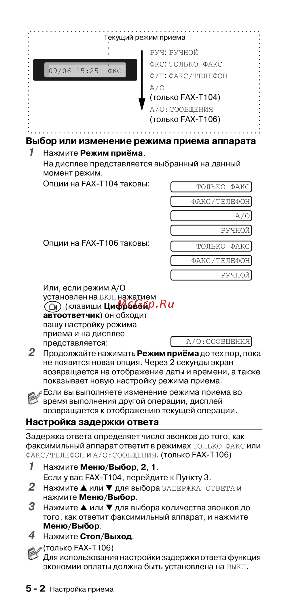 Brother FAX-T104 — настройка режима приема факсимильного аппарата [40/118]