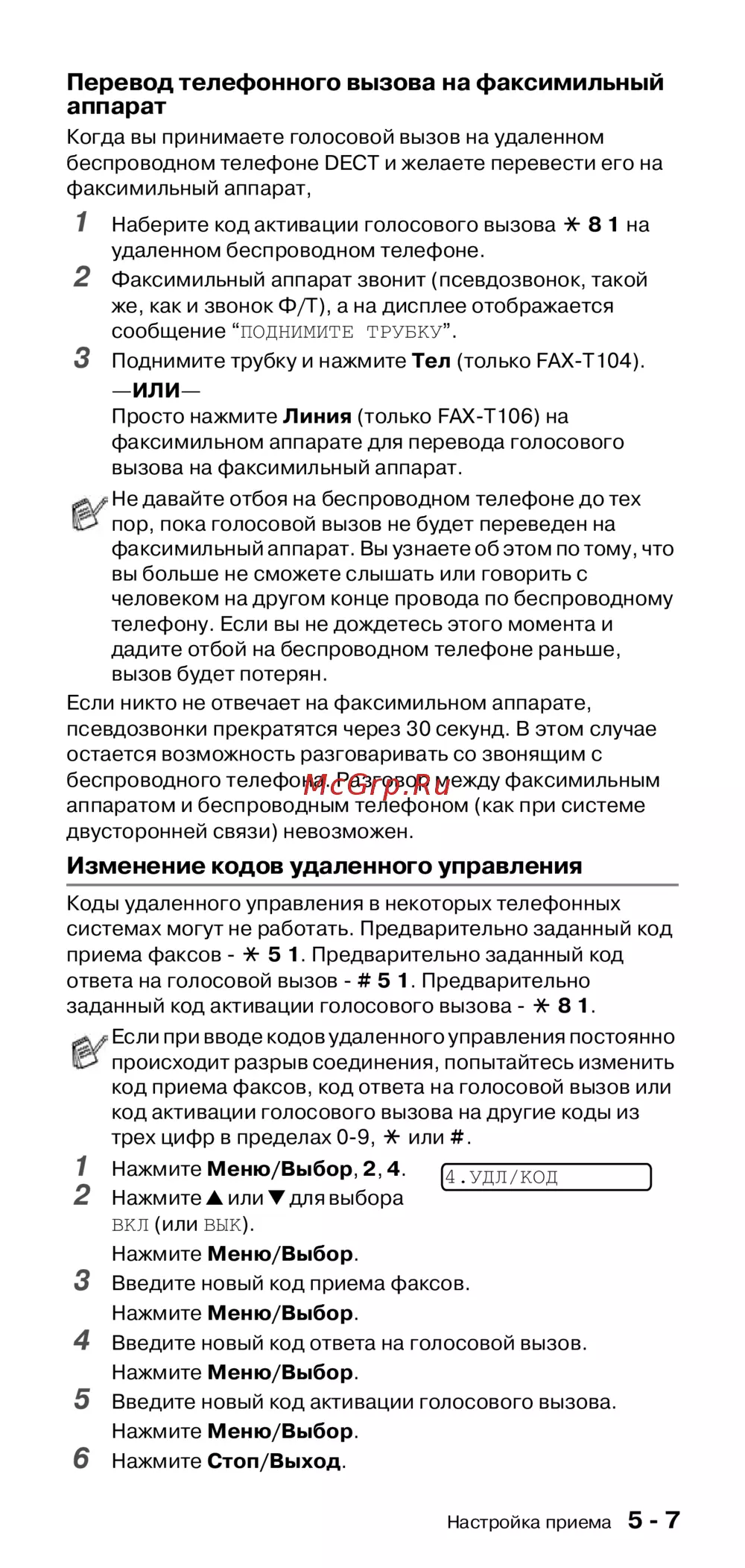 - Функции удаленного управления факсом только fax t104 1 p.11