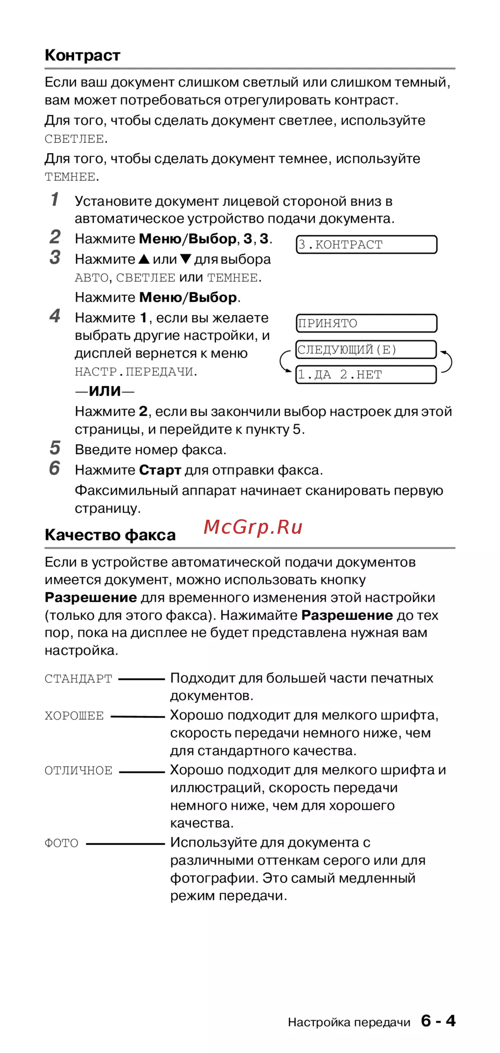 Brother FAX-T104 — настройка передачи факсов: контраст и качество документов [51/118]