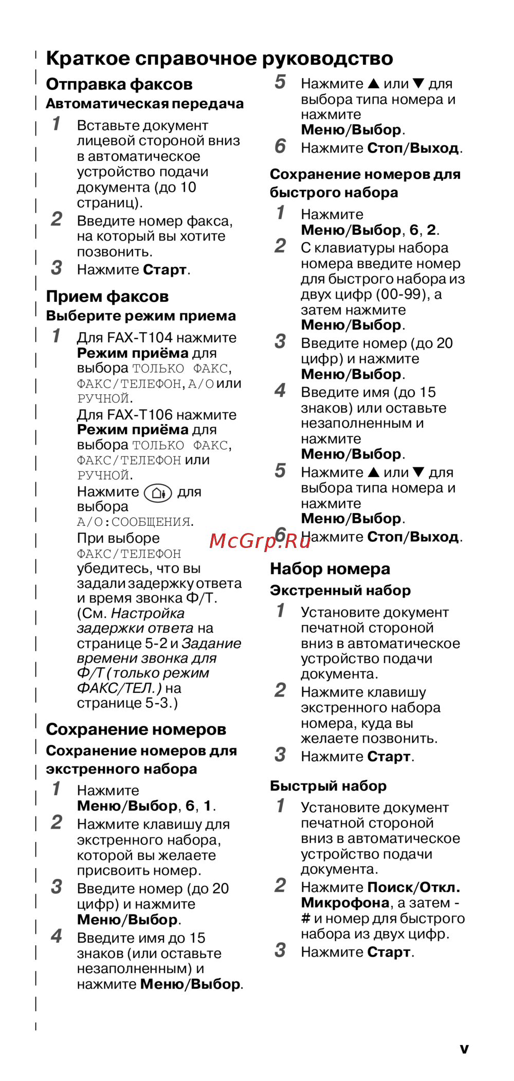 Brother FAX-T104 — полное руководство по отправке и приему факсов [7/118]