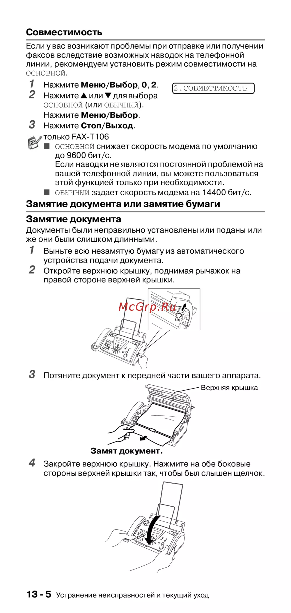 Brother FAX-T104 — устранение неисправностей факсов: советы по уходу и совместимости [96/118]