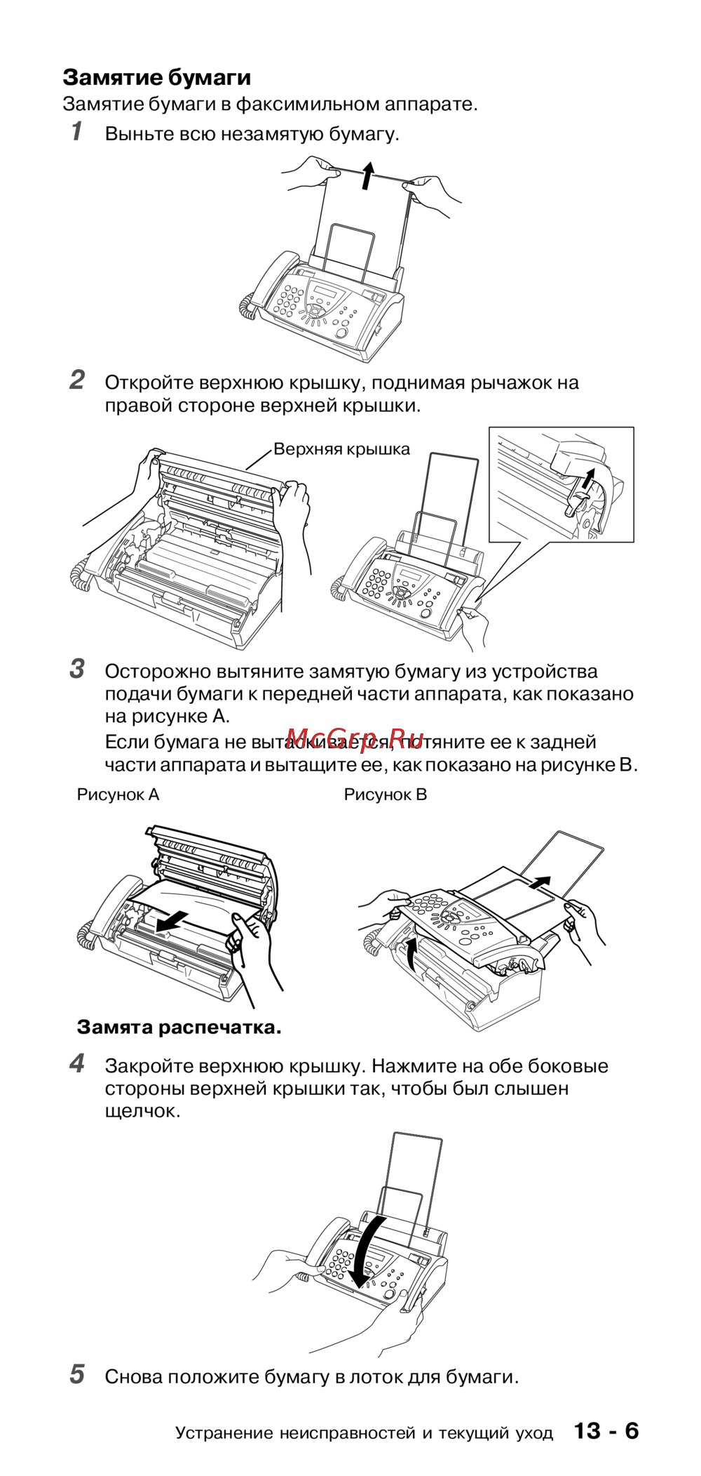 Brother FAX-T104 — устранение замятия бумаги в факсимильном аппарате [97/118]