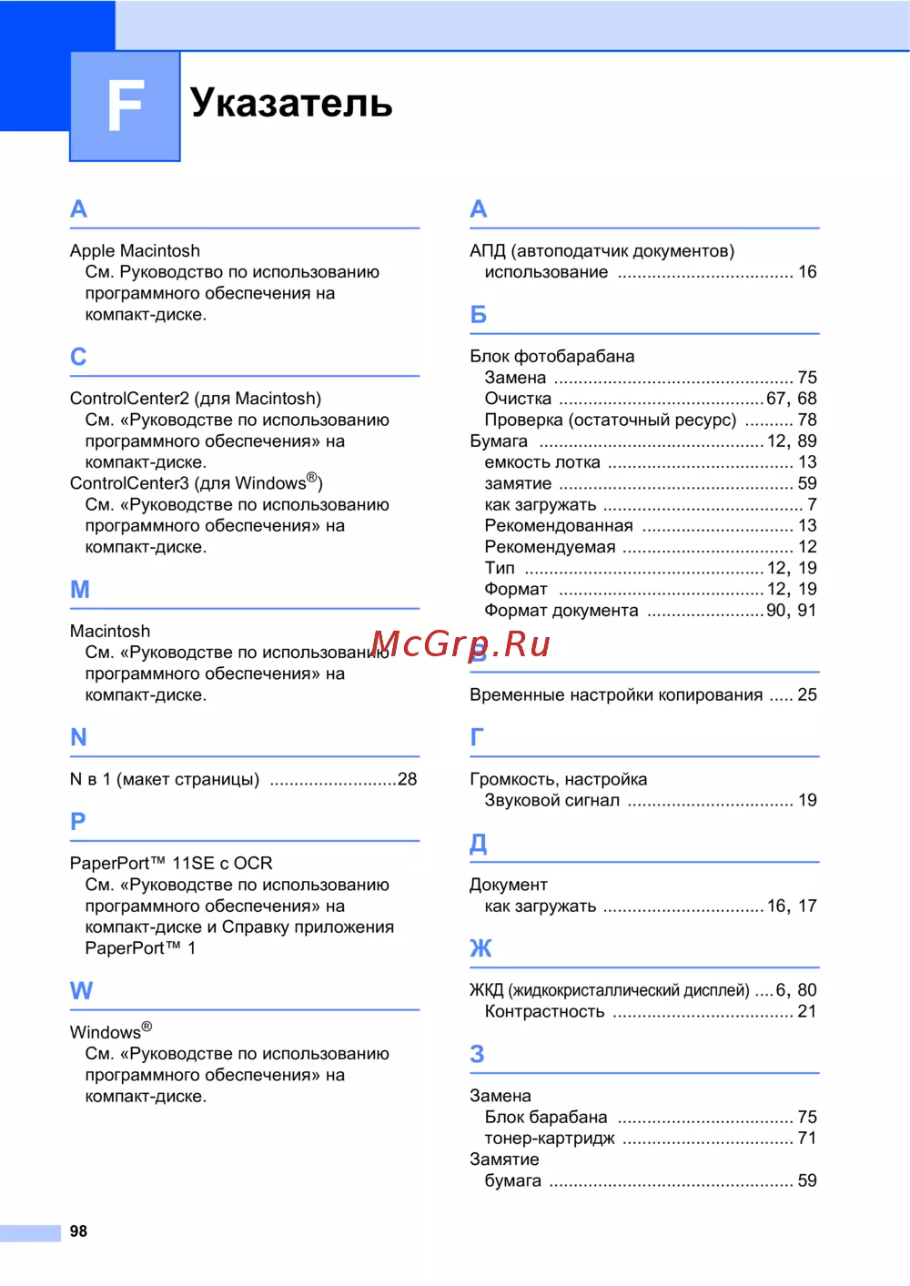- Замятие документов только dcp 7040 и dcp 7045n p.64
