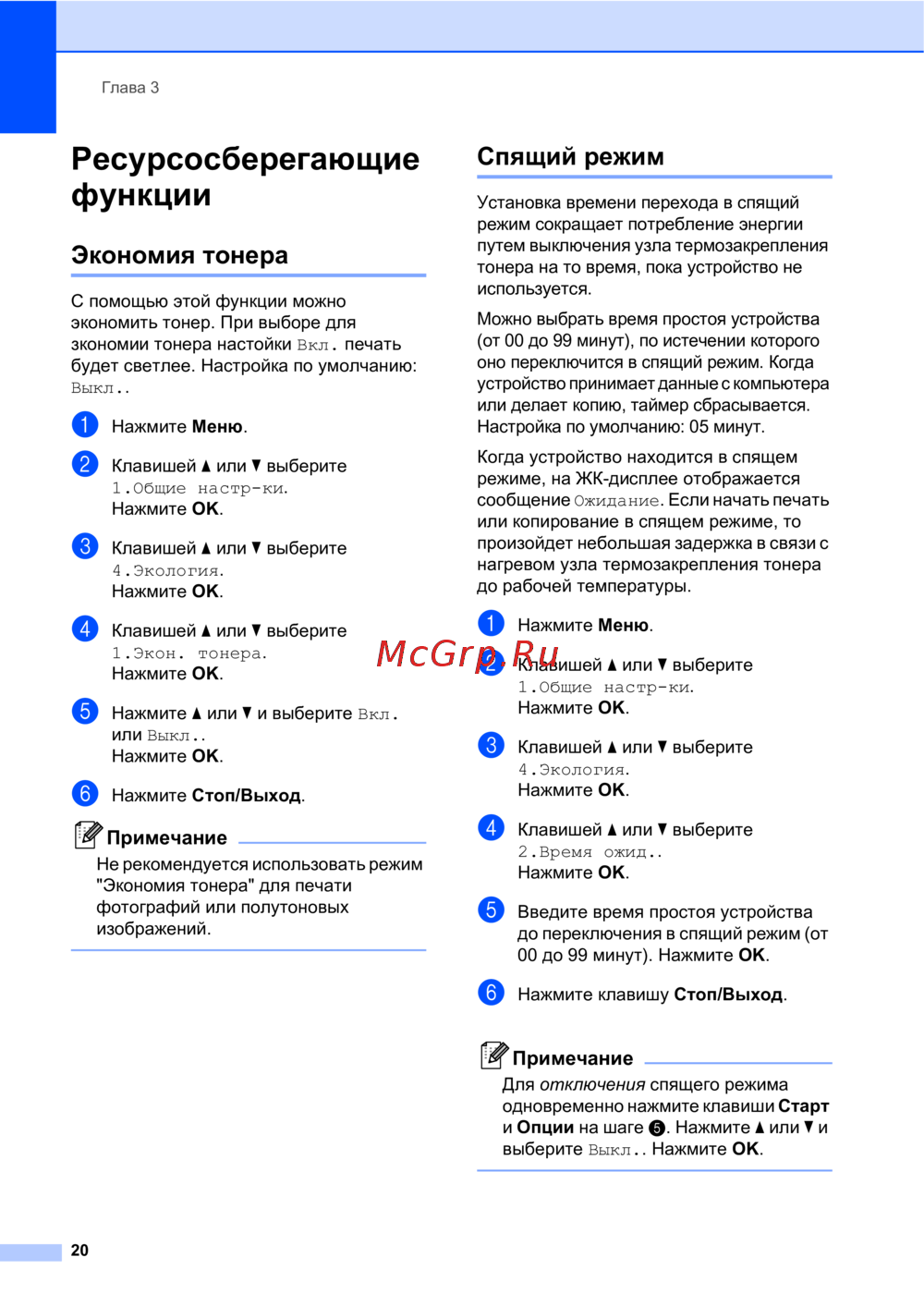 Brother DCP-7030R — экономия тонера и настройка спящего режима для устройств [26/107]