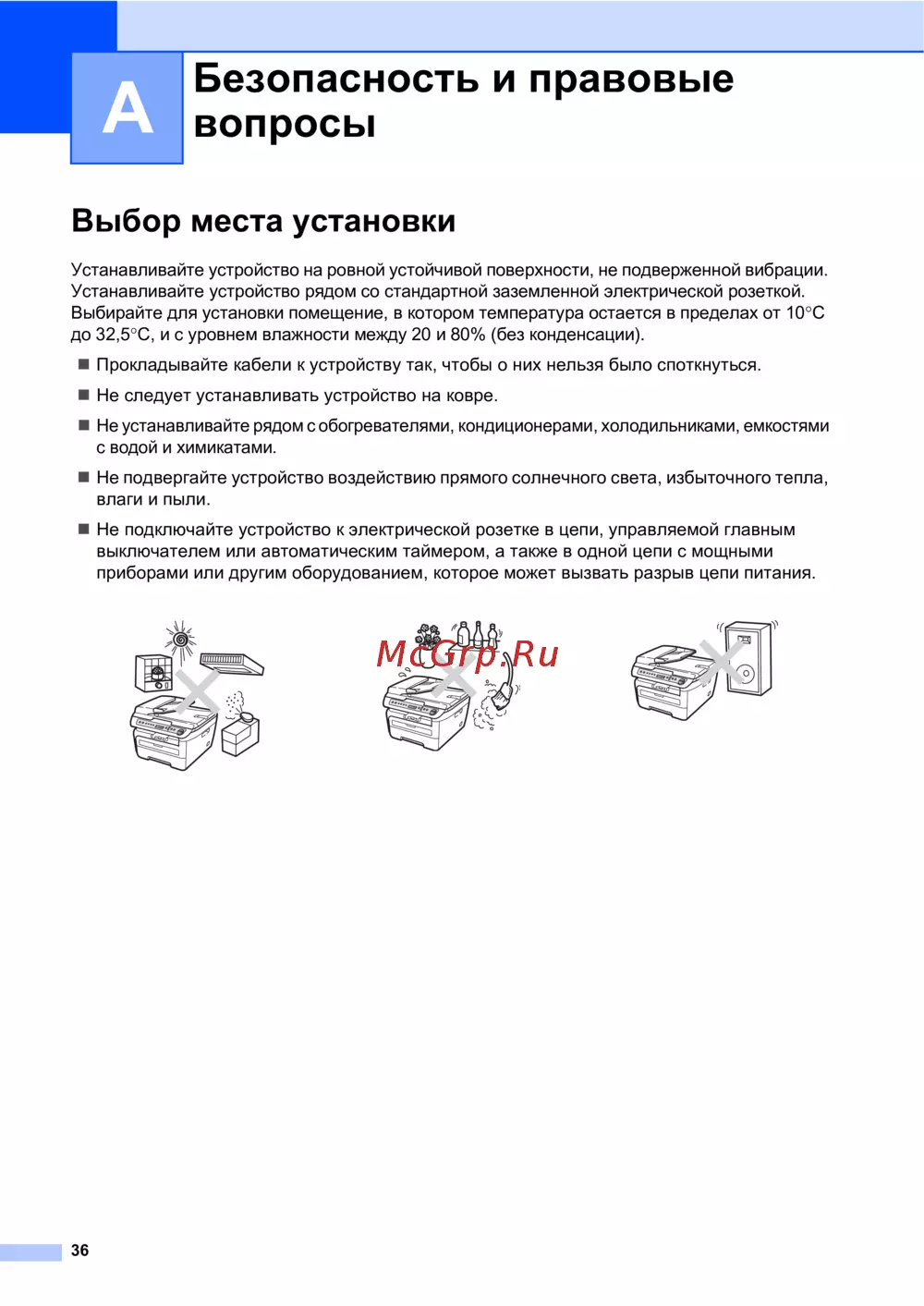 ![Brother DCP-7030R [42/107] Выбор места установки](/views2/1027018/page42/bg2a.png)