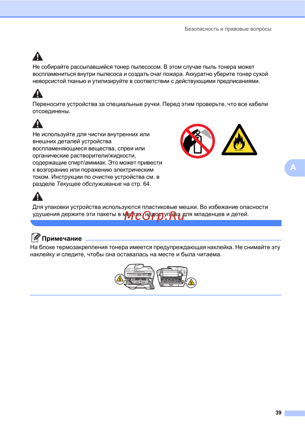 Brother DCP-7030R — безопасность и правовые аспекты работы с тонером и устройствами [45/107]