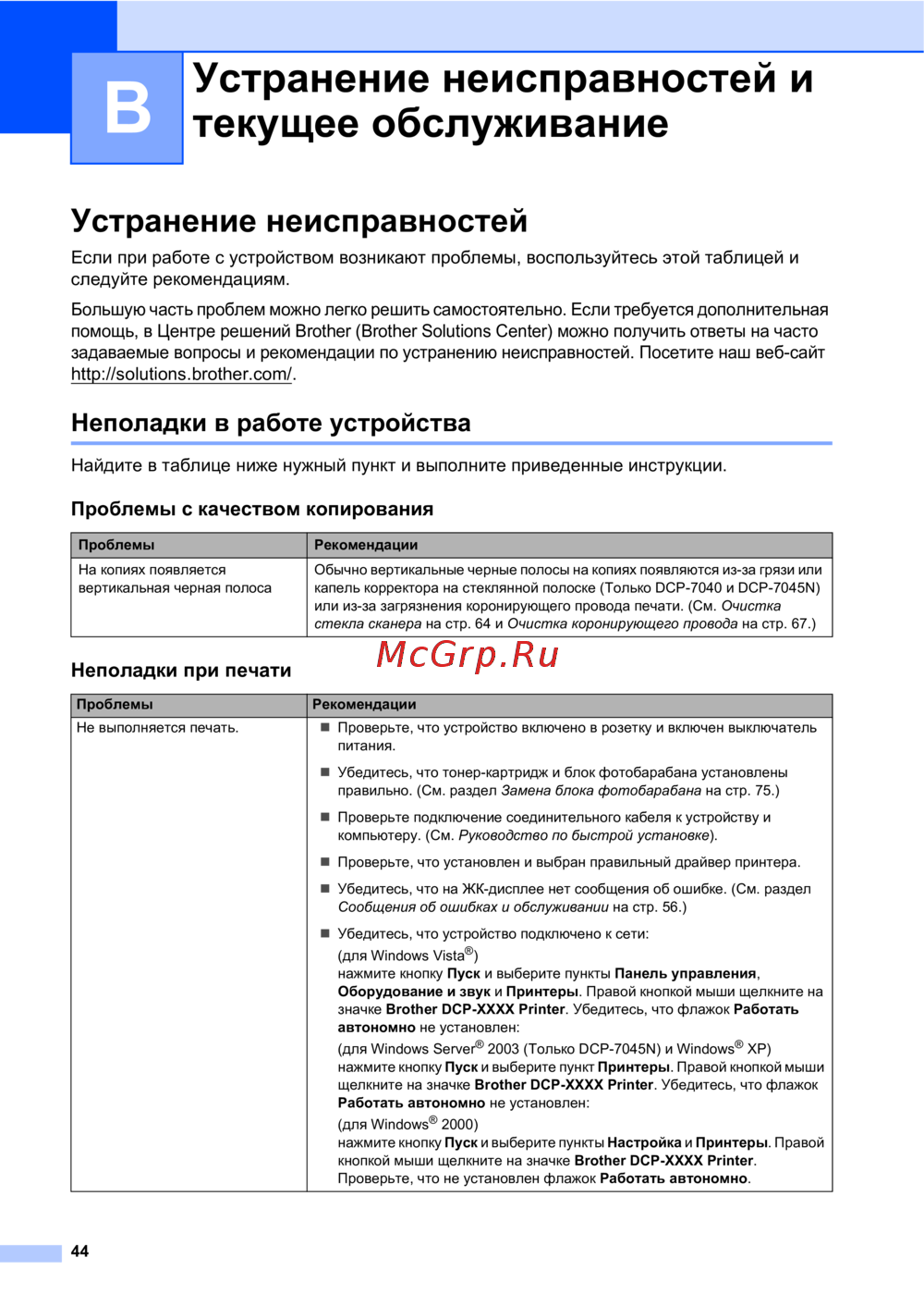 Brother DCP-7030R — устранение неисправностей: советы по решению проблем с устройствами [50/107]