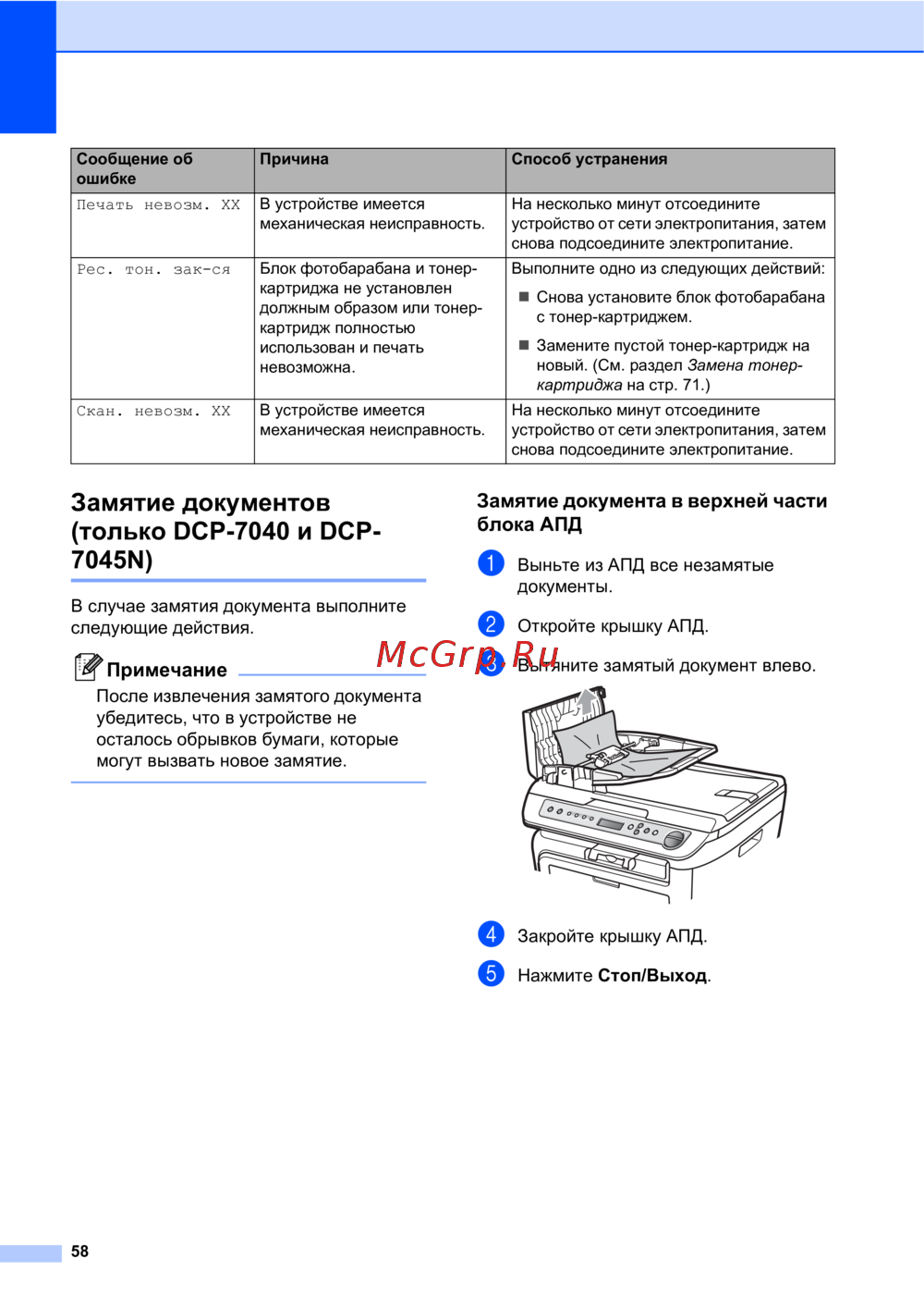 - Замятие документов только dcp 7040 и dcp 7045n p.64