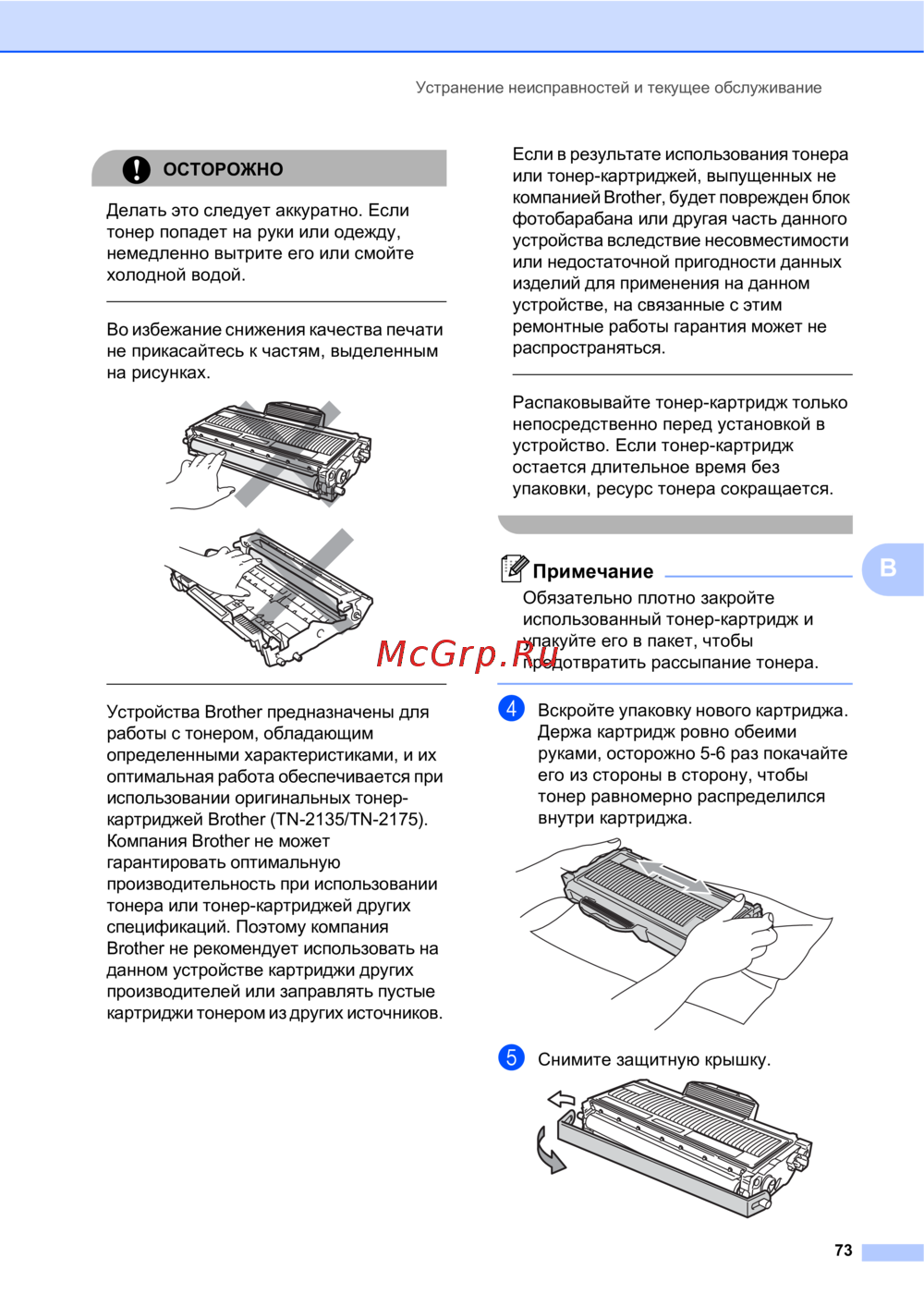 Brother DCP-7030R — устранение неисправностей и обслуживание тонер-картриджей [79/107]